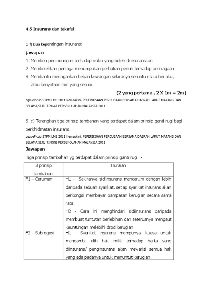 Perdagangan Tingkatan 5 Prinsip Insurans